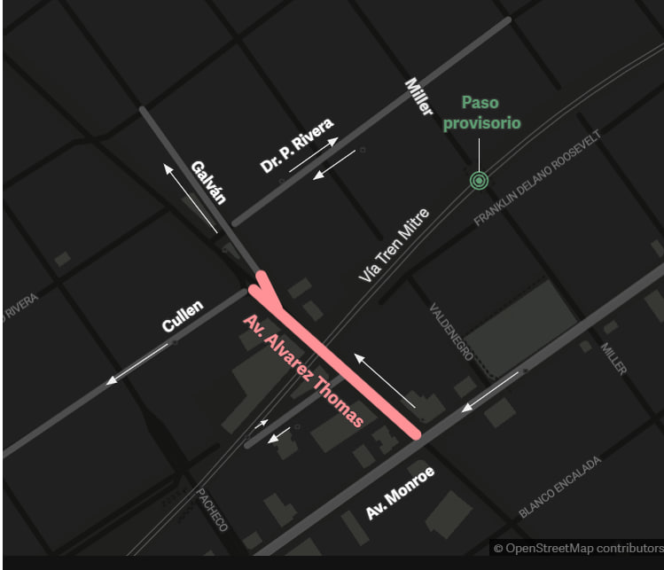 Además, el tránsito liviano podrá optar por desviarse por avenida Monroe y utilizar el paso bajo nivel Pacheco, que cuenta con una altura de 2,80 metros. A su vez, habrá cambios en la circulación y restricciones de estacionamiento en calles cercanas para mejorar la fluidez.